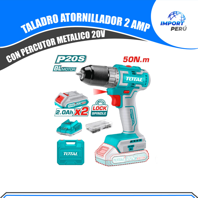 ยกPotencia y versatilidad en cada golpe! Descubre el Atornillador 20V 2 Amp CON PERCUTOR c/Chuck Metรกlico de Total. ๐ ๏ธโก